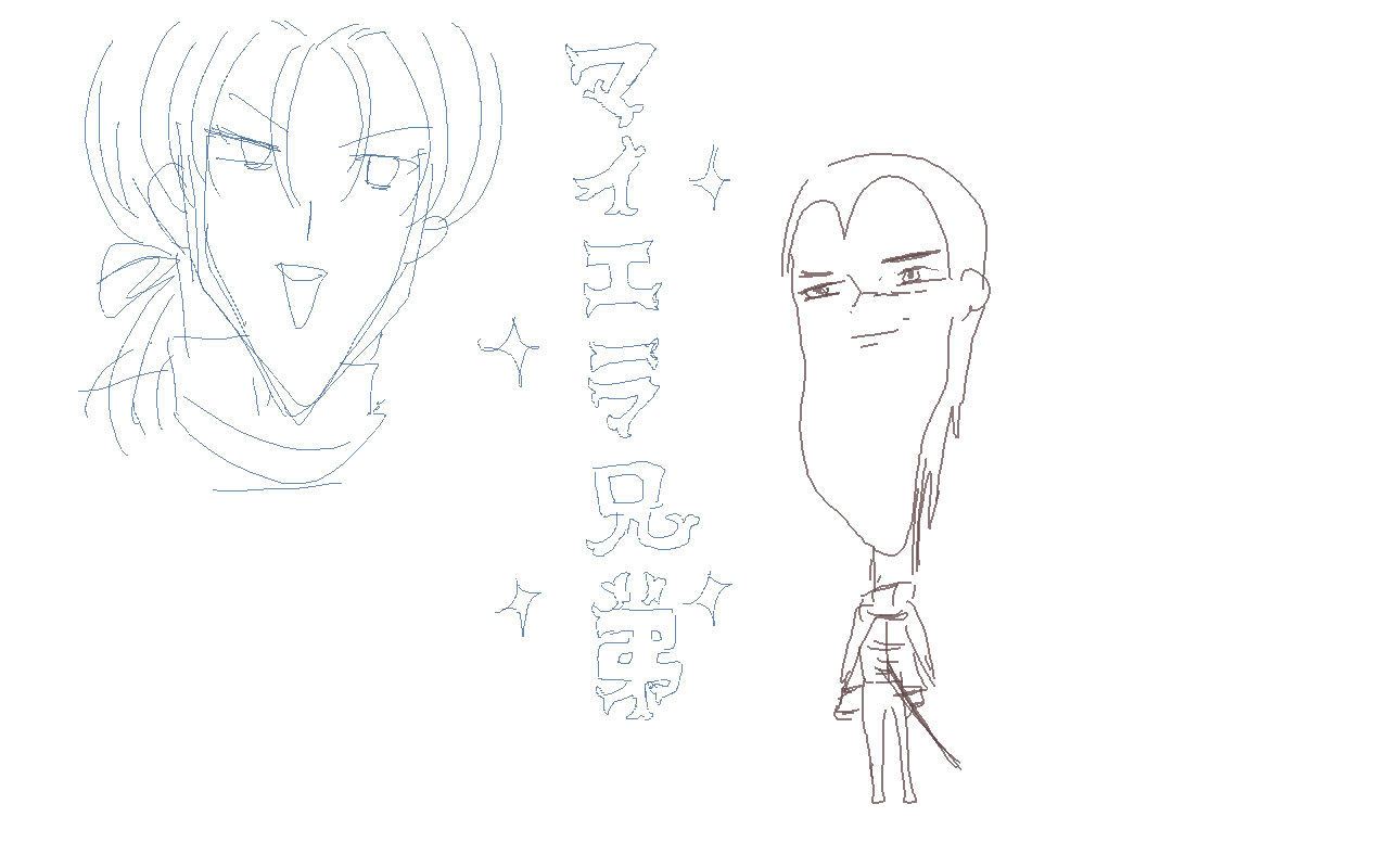 昔も今も沖田くんにホイホイされて見始めましたがやっぱり銀ちゃんかっこいいですね。描いてみたら一番好きになりました。初描きです。絵柄はかなりマネしましたが割と描きやすい…髪の毛の束が太いと描きやすいですね。銀ちゃんのデザインは胸鎖乳突筋と鎖骨がバッチリ描けてスバラシイです。着流しが良い感じに緩さを出しているので全体的にルーズな感じなのですがインナーがかなり体にぴっちりなのでこのメリハリがたまんないですね。しかも半袖。うーんタマラン…